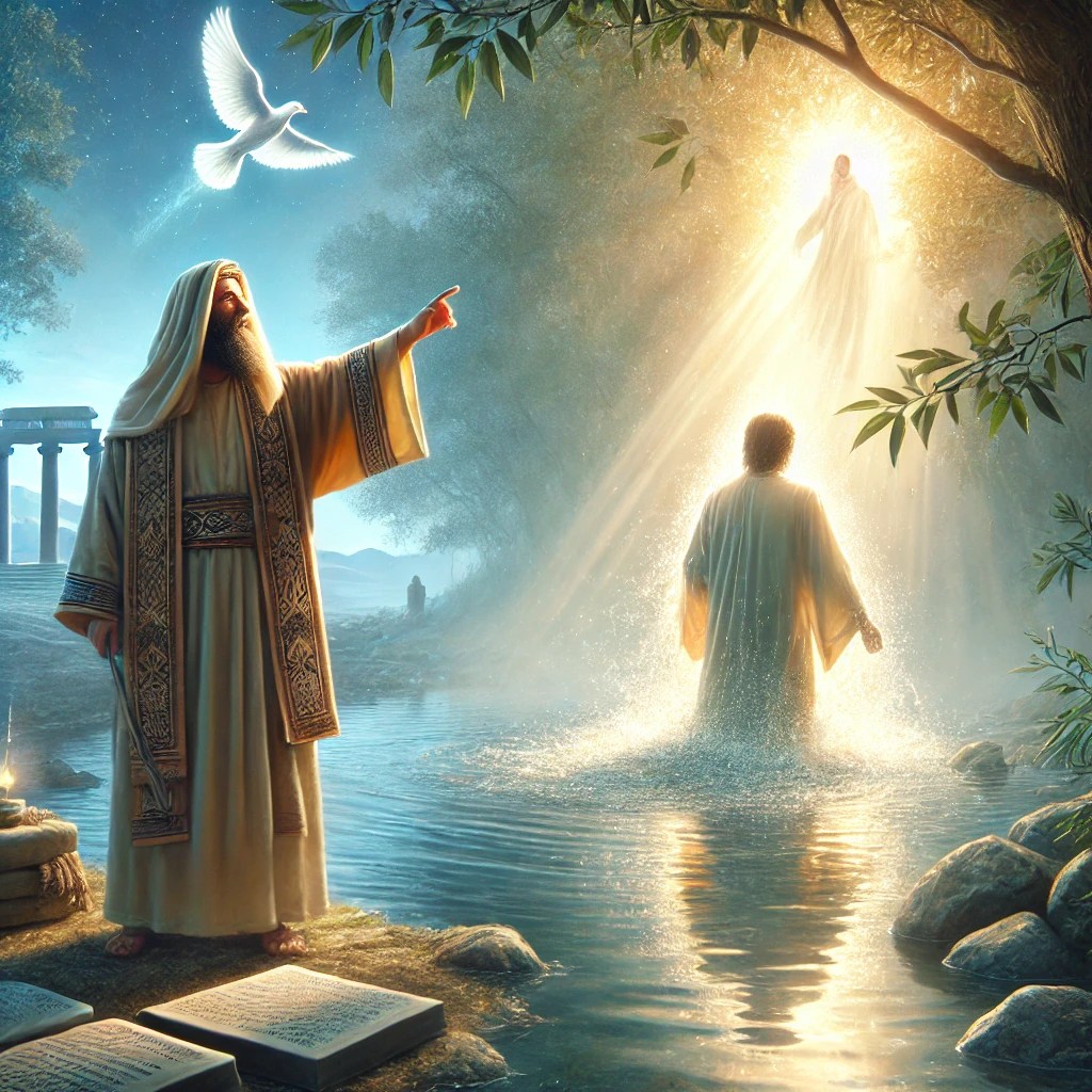 Jesus’ own baptism by John, though He was sinless, marked the beginning of His public ministry and identified Him with the people whom He came to save. This hints at the ultimate act of cleansing and renewal that will be achieved through His death and resurrection.